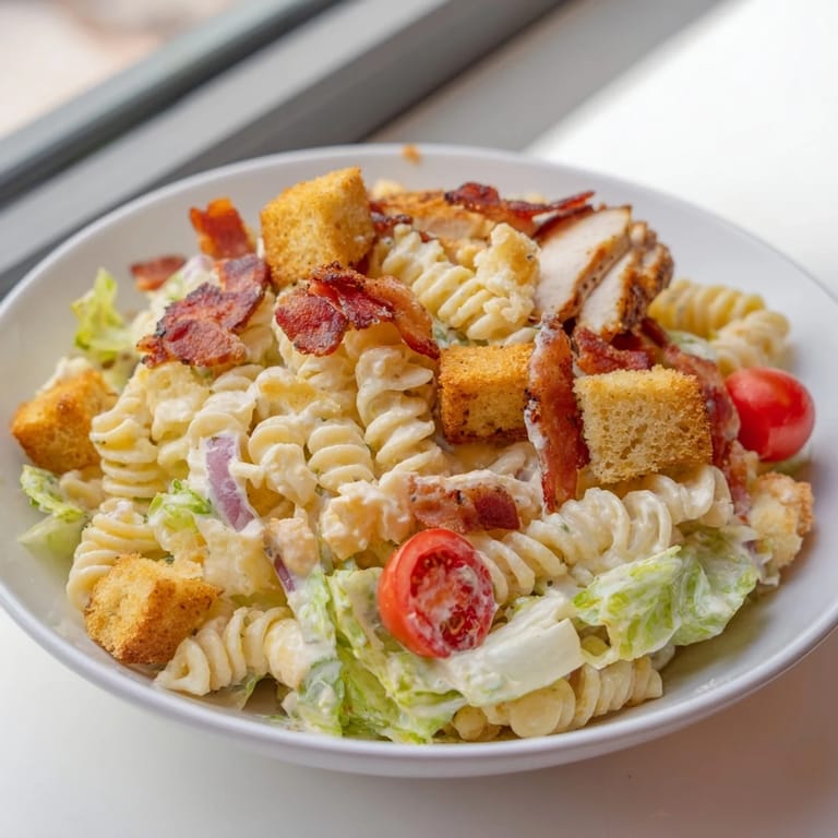 Save One evening after a long shift, I opened the fridge to find leftover rotini, half a head of romaine, and some grilled chicken I'd meal-prepped on Sunday. I wasn't in the mood for anything complicated, but I also didn't want another sad desk salad. That's when I remembered the Caesar dressing my aunt used to make from scratch, tangy and rich with real anchovies. I tossed everything together, crumbled in some bacon I'd crisped up, and suddenly dinner felt like an event. This pasta salad has been my go-to ever since.
