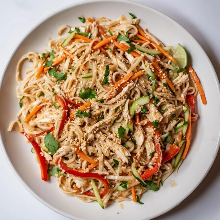 The dressing is really where this whole thing lives and breathes. Toasted sesame oil has this deep, almost nutty flavor that regular oil could never touch, and when you combine it with ginger and garlic, you get this aromatic base that makes everything taste intentional and restaurant-quality. I've learned that the peanut butter or tahini isn't just there for richness—it also acts as an emulsifier, keeping all the components from separating. The first time I made this without whisking long enough, the oil and vinegar split by the time we sat down to eat, and it taught me that taking thirty seconds extra to whisk really does make a difference.