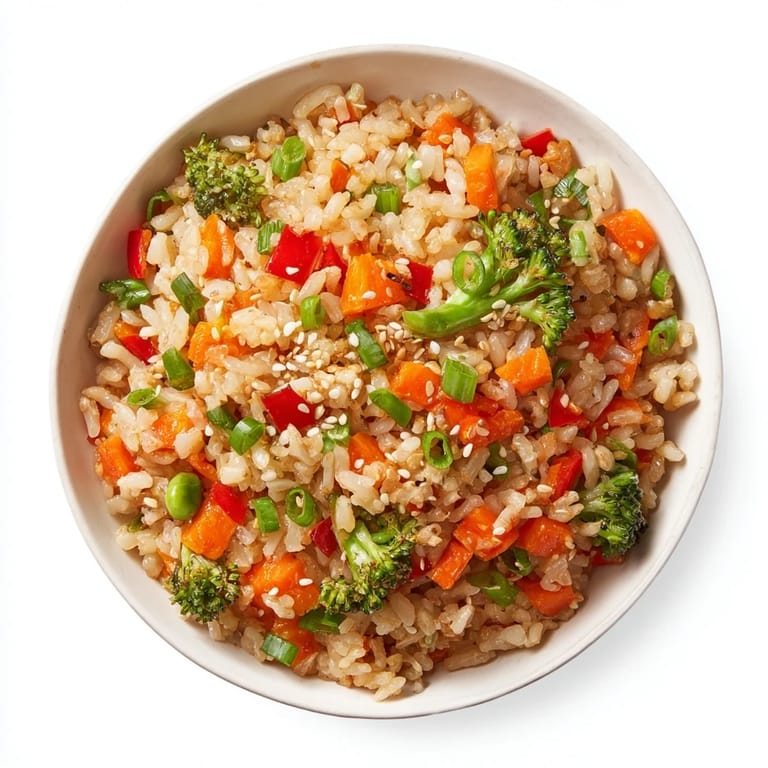 Save A vibrant, flavorful bowl featuring golden, crispy rice tossed with colorful sautéed vegetables and savory seasonings Perfect for a light yet satisfying supper