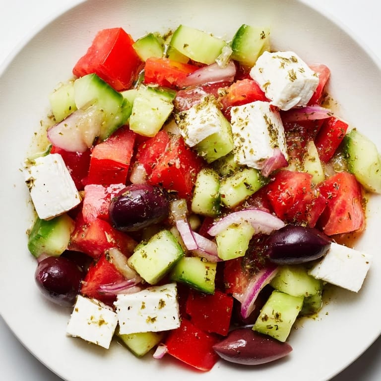 Save There's something about standing in front of an open farmers market stall on a warm afternoon that makes you understand why people move to Greece. I picked up the most perfect tomatoes—the kind that smell like summer itself—and suddenly had this urge to build something honest around them, something that didn't need a recipe so much as permission to taste really good without trying too hard. This Mediterranean salad became my answer, and it's been my go-to ever since, especially when I want to eat well without spending the whole evening in the kitchen.