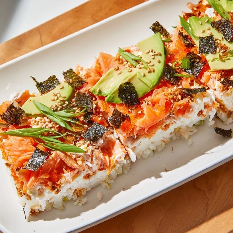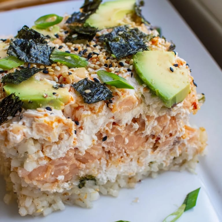 I made this for my family on a random Tuesday night, and my sister—who normally orders takeout sushi—asked for seconds. She couldn't believe I'd made it, and when I told her it was basically just rice, salmon, and toppings layered into a baking dish, she laughed at how simple it actually is. That moment when someone enjoys homemade food more than their usual restaurant go-to never gets old.