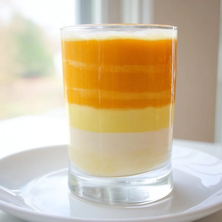 Save There's something almost magical about watching a smoothie come together in layers—each color bleeding into the next like a sunset actually happening in a glass. I discovered this tropical number on a sweltering afternoon when my kitchen felt too warm to cook, and I was staring at a pile of overripe mangoes that needed rescuing. The passion fruit came next, almost by accident, and then the orange juice, and suddenly I realized I'd built something almost too pretty to drink. It became my go-to move for impressing people without actually trying, which is honestly the best kind of recipe.